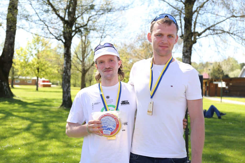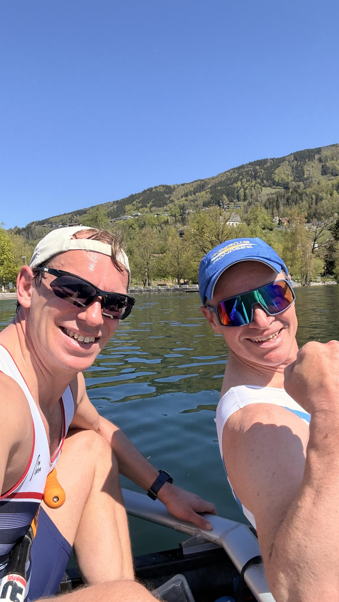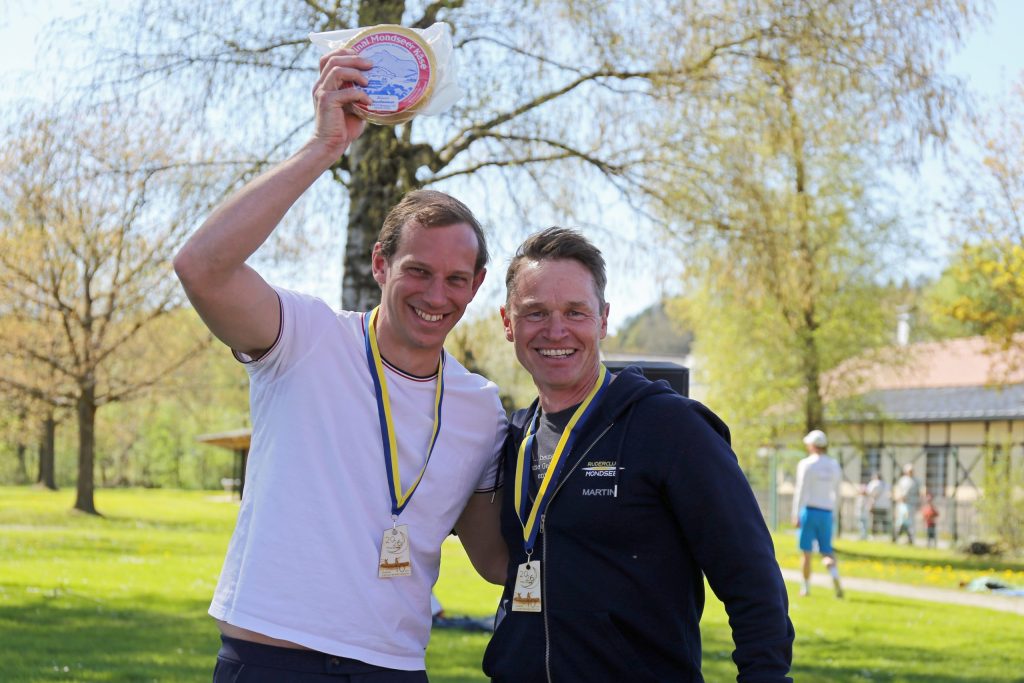 Damit hatte Matthias nicht gerechnet: Sein Ruderpartner Chris (von der LIA) spornte ihn zu Schlagzahl 32 an. Und das ganze 20 km lang. Der Sieg war damit gesichert, der Laib Mondseeer Käse auch. Die Siegerzeit von 1:24:46 kann sich sehen lassen, sind die beiden doch noch eine „Extra-Runde“ um eine Boje gefahren.