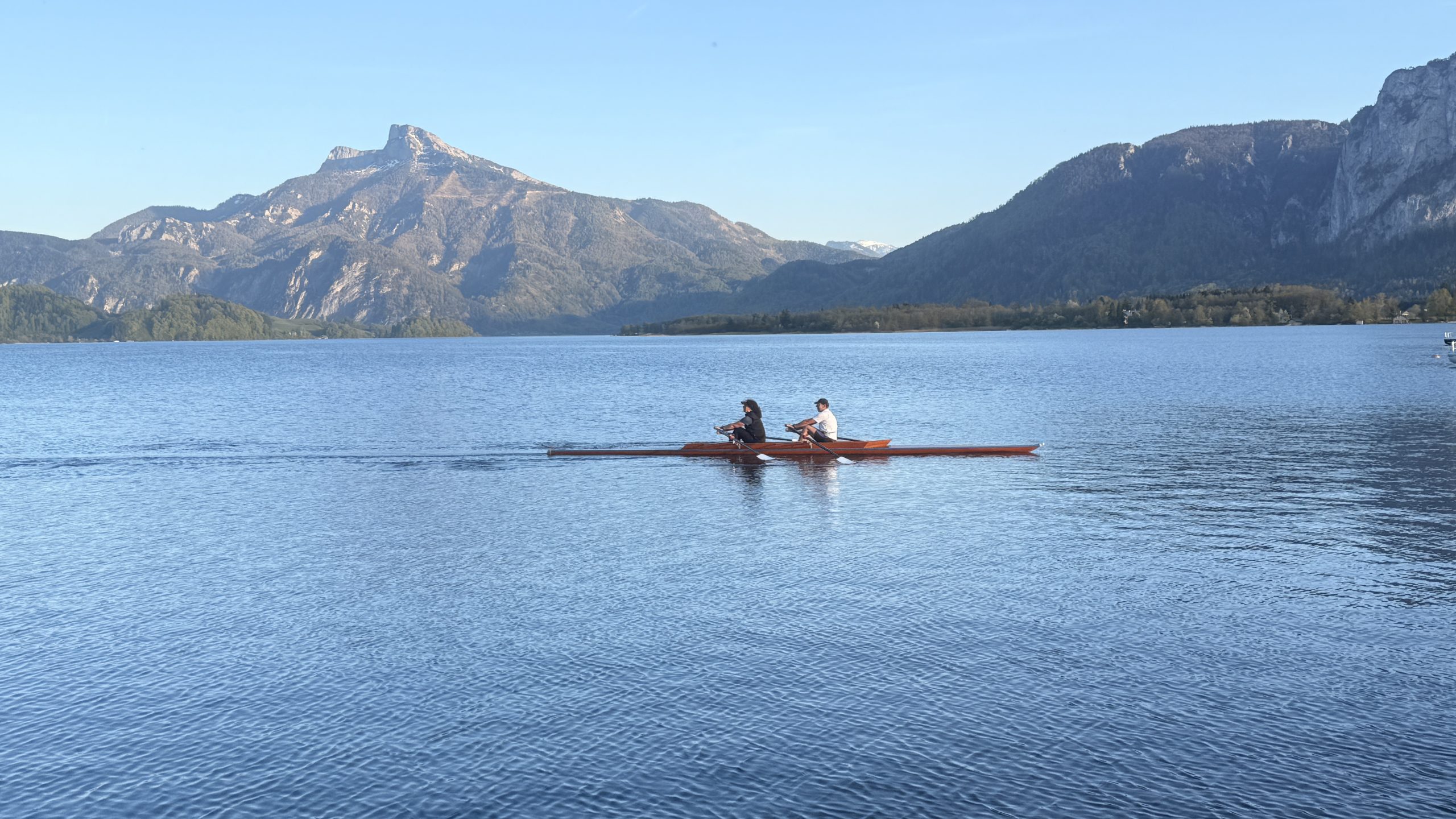 Einfach einsteigen und drauf los rudern – das war das Motto von Georg und Martin (vom Ruderclub Wolfgangsee). Das eingespielte Duo konnte sich auf der 10 km-Strecke den Sieg holen. Wie Georg immer wieder zu sagen pflegt: „Jetzt hamma den Kas scho wieder g’wonnen.“